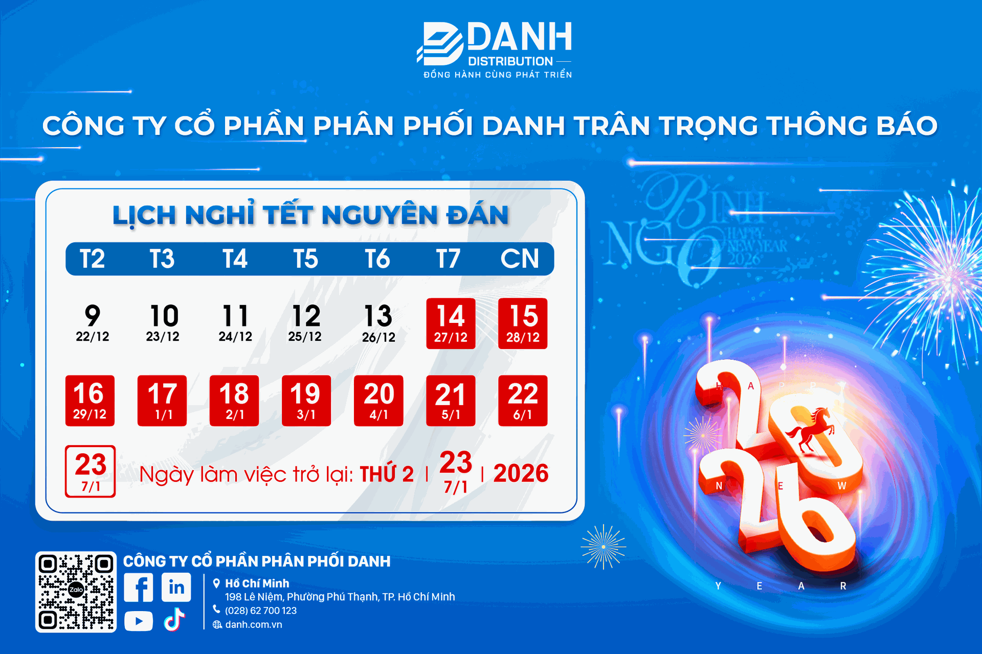 [THÔNG BÁO] LỊCH NGHỈ TẾT NGUYÊN ĐÁN 2026